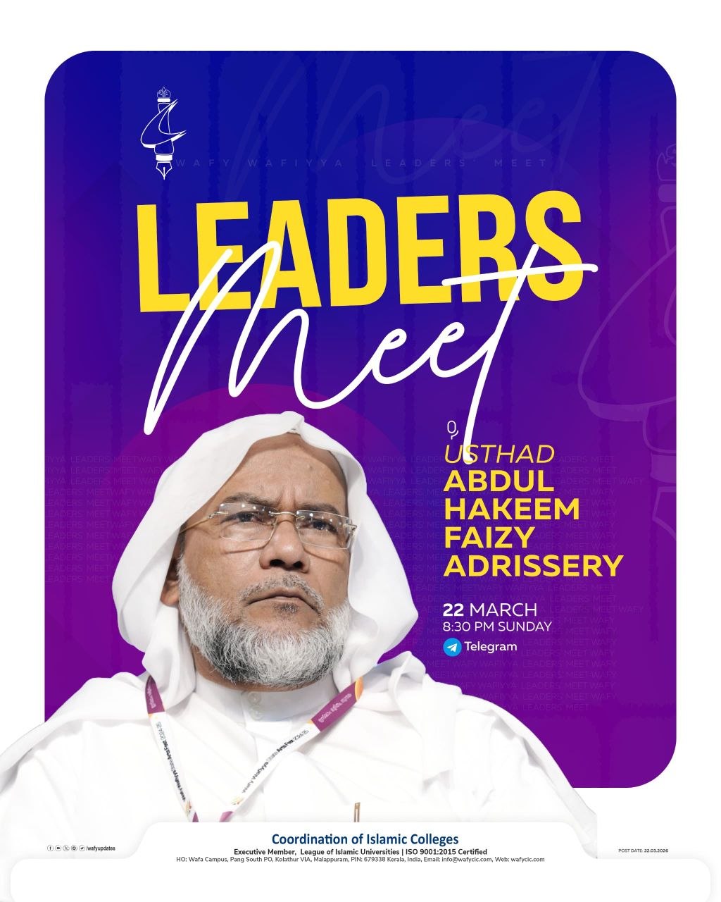WAFY WAFIYYA LEADERS MEET Keynote Address: Usthad Abdul Hakeem Faizy Adrissery (General Secretary, CIC) 22/03/2026 08:30 PM I Telegram #WAFY_UPDATES [562] Coordination of Islamic Colleges - CIC ......