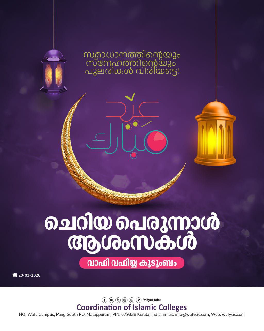 സമാധാനത്തിന്റെയും സ്നേഹത്തിന്റെയും പുലരികൾ വിരയട്ടെ! ചെറിയ പെരുന്നാൾ ആശംസകൾ വാഫി വഫിയ്യ കുടുംബം #WAFY_UPDATES [561] Coordination of Islamic Colleges - CIC ......